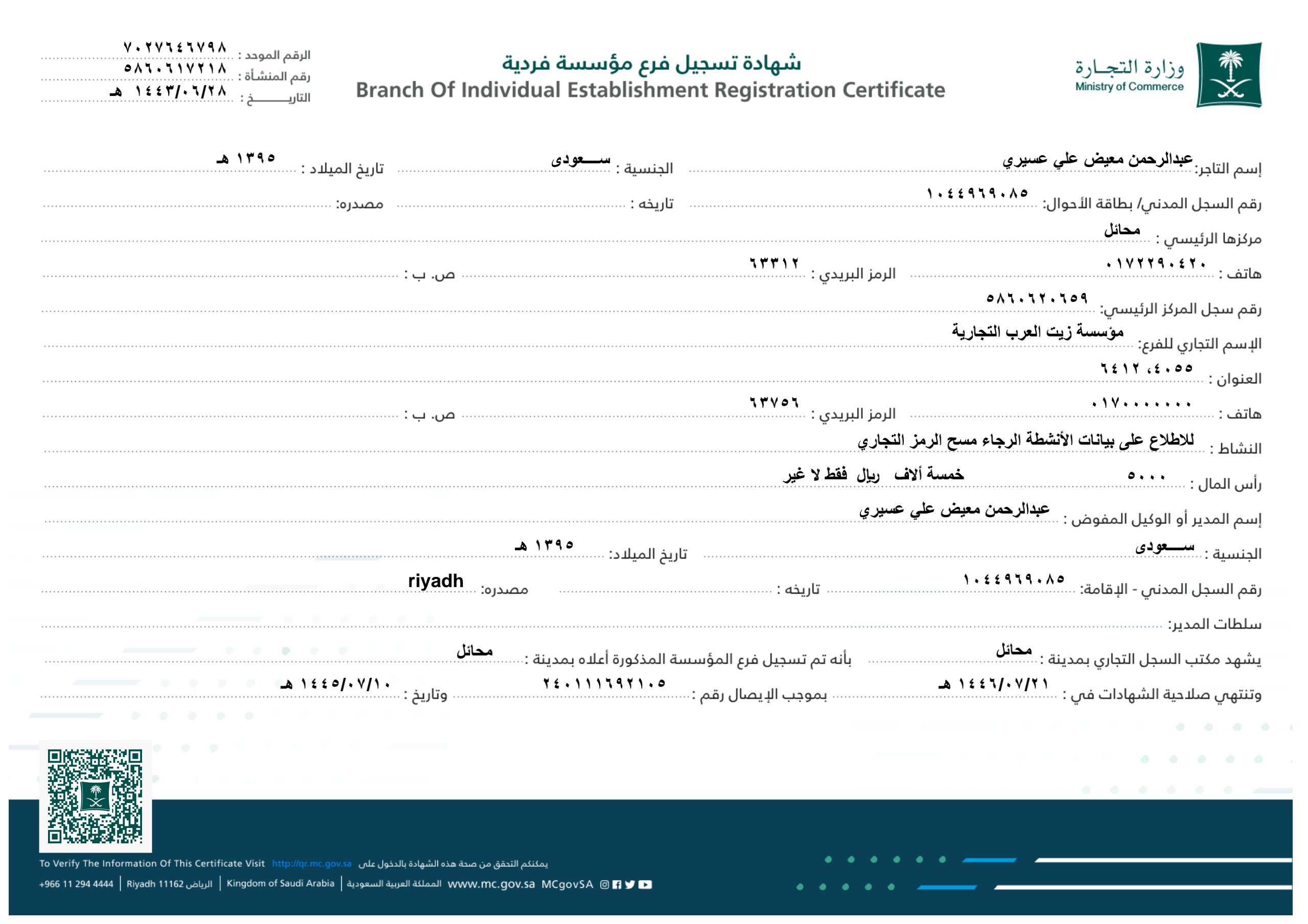 السلام عليكم ورحمة الله وبركاته الاخ عبد الرحمن معيض علي يسرنا في مكتب دارة الجميرة للاستشارات البيئية تقديم خدمة استخر..